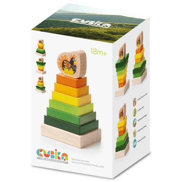 Het hout van de Cubika Toys producten is afkomstig uit de Karpaten in het zuidwesten van Oekraïne. Dankzij de grote afstand tot de industriële installaties is de impact op het milieu in de regio gering. De bossen waaruit het hout afkomstig is, worden op duurzame wijze beheerd.