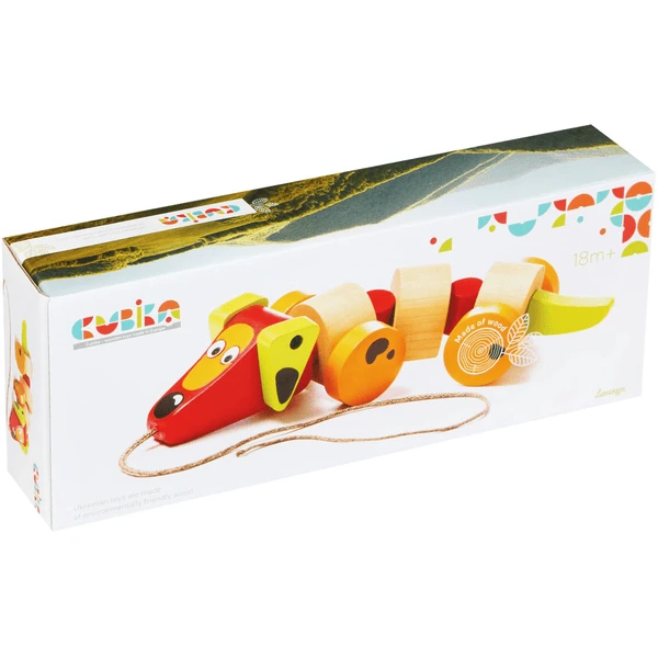 De teckel heeft een riem als touw (55 cm) waaraan uw baby de hond kan meetrekken. Het trekspeelgoed motiveert uw kind om motorische vaardigheden te ontwikkelen.