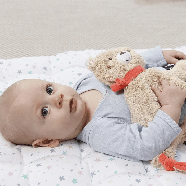 De pluizige knuffeldoekbeer uit de Bruno-collectie nestelt zich bijzonder zacht voor haar Baby . Het geeft T rost, warmte en een gevoel van veiligheid tijdens uitgebreid knuffelen en knuffelen. Geplaatst naast het kussen, de charmante beer knuffelt snel in de harten van vermoeide avonturiers. Zijn verschillende knuffelzachte materiaalien, de grote slaapmuts met sterhanger en de twee knopen nodigen je uit om te voelen, aan te raken en te zuigen. De schattige beer Bruno helpt je in slaap te vallen, begeleidt kleine ontdekkingsreizigers dag en nacht en wordt zo snel je eerste beste vriend.