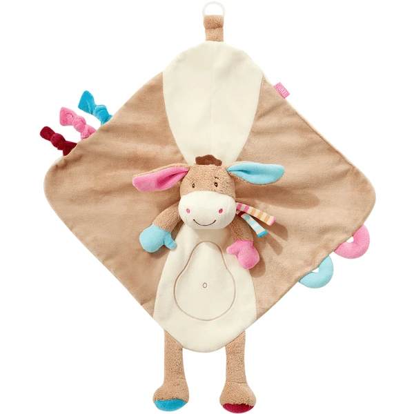 Het Deluxe knuffeldoekje van de ezel uit de ezelscollectie Monkey brengt een glimlach op het gezicht van zelfs de allerkleinsten. Het geeft T rost, warmte en een gevoel van veiligheid en wordt snel je Baby beste vriend. Naast het kussen geplaatst, de schattige ezel knuffelt snel in de harten van vermoeide avonturiers. De verschillende materiaalien en twee lussen nodigen u uit om te grijpen, te voelen en te zuigen. Dankzij de praktische siliconen bevestigingsring passen alle fopspenen met en zonder handgrepen op de knuffeldoek ezel. De fopspeen gaat dus niet verloren op de weg.