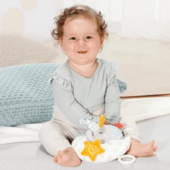 De lichtgevende elementen nemen de angst van baby’s voor het donker weg en geven een gevoel van veiligheid. Met de bevestigingsriempjes is hij thuis en onderweg veilig vastgebonden en kun je hem overal mee naartoe nemen. Knuffelen, dromen, liefhebben: Deze geweldige slaapvriend zal snel het eerste kindervriendje van baby worden.