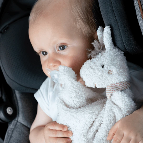Speelkameraadje, slaaphulp & knuffeldoekje met bevestigingsring voor fopspeen om baby’s en peuters te grijpen, te voelen en lief te hebben.