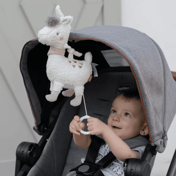 De schattige Lama uit de Peruaanse collectie is niet alleen een trouwe metgezel, maar troost en kalmeert met zijn zachte melodie! Door het praktische formaat en de bevestigingsriemen kun je de pluche lama overal mee naartoe nemen. Voelen, knuffelen en liefhebben: Het wordt al snel de beste vriend van baby!