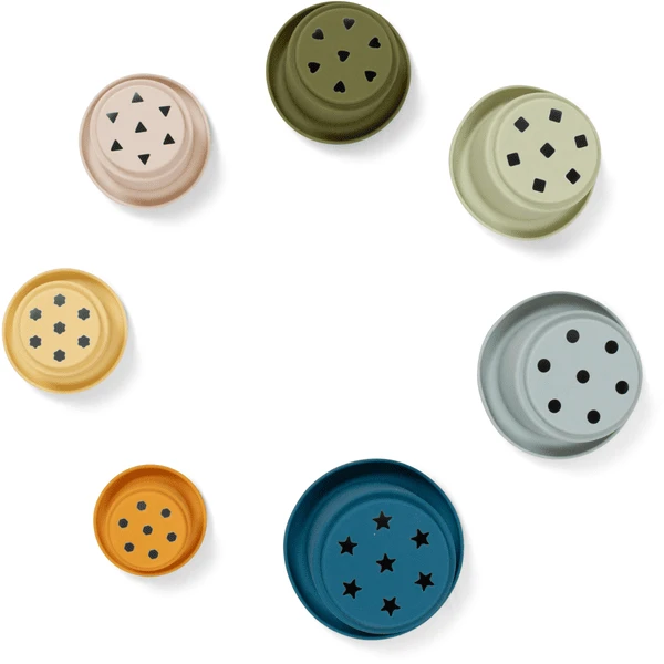 - Stapel de zeven bekers om je eigen kleine toren te bouwen – afbreken is net zo leuk!