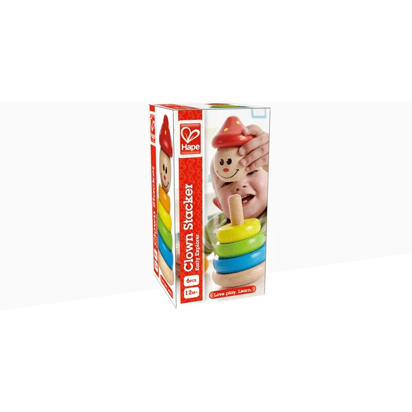 Deze clown kan schommelen, zijn ringen kunnen gestapeld worden en brengt met zijn vrolijke gezicht elke kind aan het lachen!