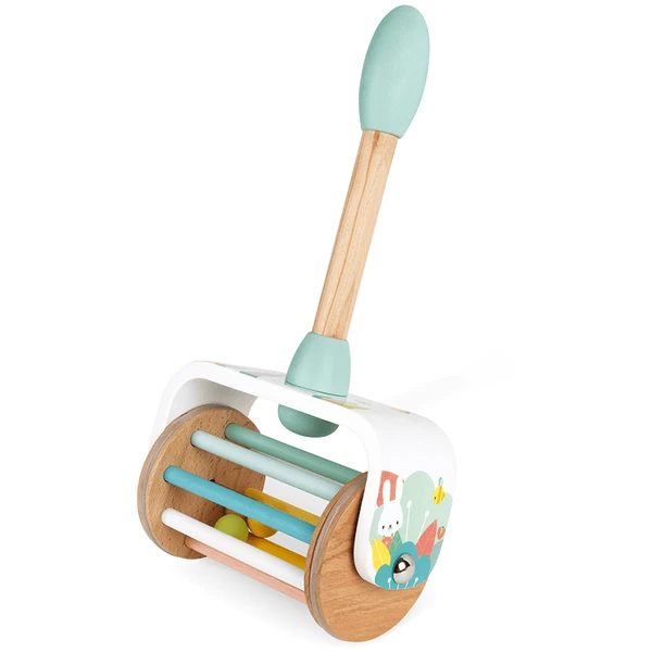 Mooie loopstok in aangename eigentijdse kleuren met schattige dieren die je kind begeleiden als hij of zij leert lopen.