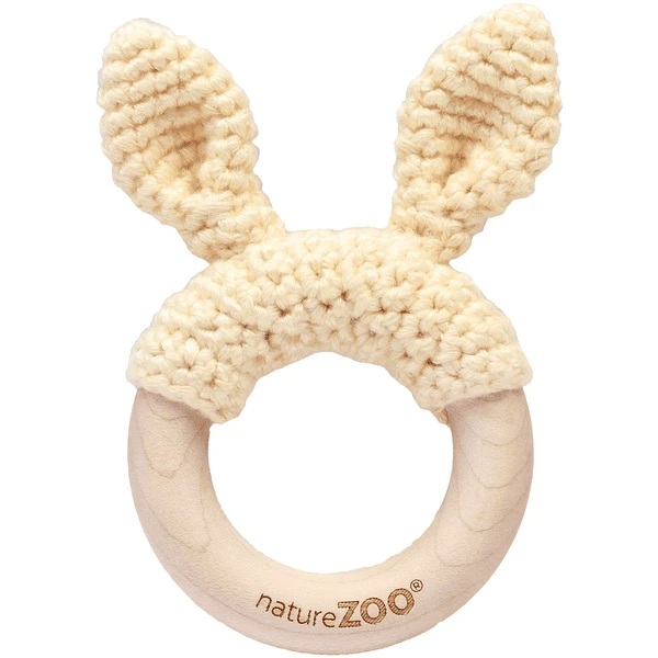 De bijtring is gemaakt van natuurlijk esdoornhout. De gehaakte konijnenoren in het wit maken de bijtring tot een absolute blikvanger – je baby zal het ook geweldig vinden.