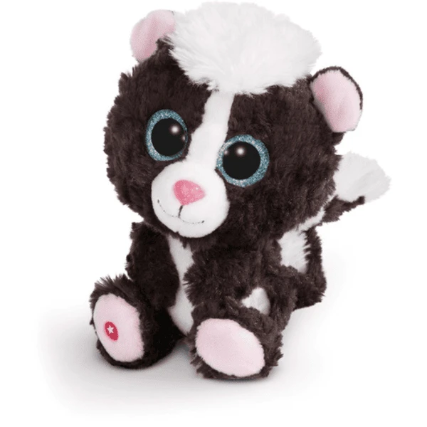 Zwart-witte pluizige vacht, knuffelige gelaatsuitdrukking, grote blauwe glinsterende ogen. Dit is ons stinkdier Suppi Met zijn pluizige haren op zijn hoofd is hij een brutale vriend en een geweldige knuffel.