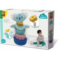 Met deze Sensory Stacking Tower set uit de Tiny Talents productlijn van SES Creativ e, kunnen kleintjes verschillende koala torens bouwen.