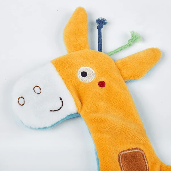 Grote mogelijkheden om te grijpen, te zuigen en te ontdekken worden geboden door de kleurrijke beentjes en de geknoopte korte linten op het hoofd en de staart. De knisperende folie in het dier biedt een bijzondere akoestische verrassing. Het 27 cm hoge knisperdoekje wordt al snel het favoriete speelgoed van de baby tijdens de wakkere uren. De Schnuffeltuch wordt aanbevolen vanaf de geboorte. Zoals gebruikelijk zijn alle stoffen van hoge kwaliteit en bestand tegen veelvuldig wassen in de wasmachine bij 30 °C.