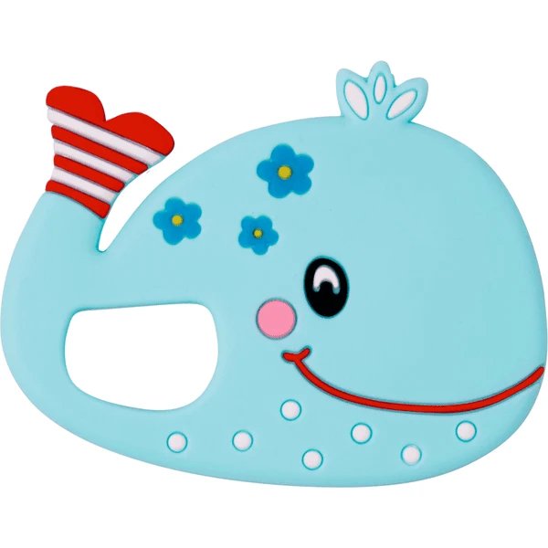 Deze schattige bijtring met walvis begeleidt de kleintjes dapper door de tijd van doorkomende tandjes. Hij is gemaakt van flexibele siliconen en bereikt dus snijtanden, hoektanden en kiezen. Door het lage gewicht en de kindvriendelijke vorm kan de ring zelfs door kleine handjes gemakkelijk worden vastgepakt.