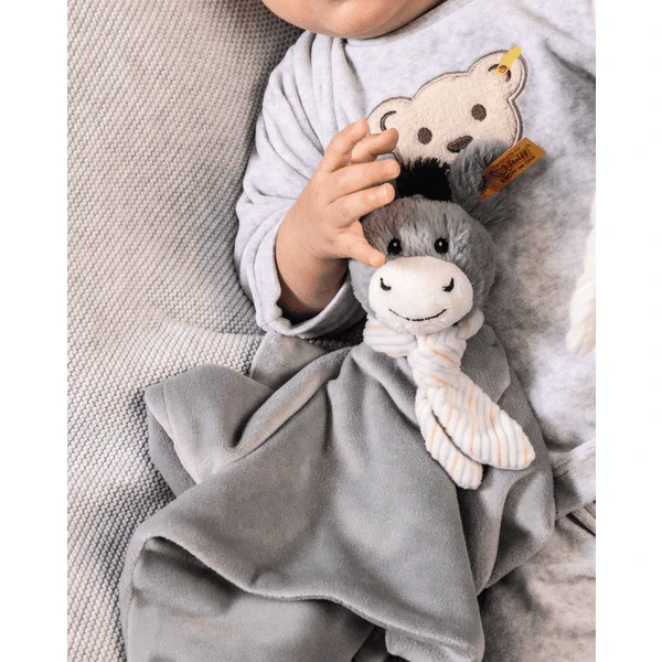 - Met geborduurde ogen, knuffeloren en de halsdoek met de diagonale strepen