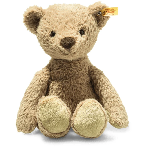 Thommy Teddybeer, 30 cm groot, is gemaakt van knuffelig zacht caramel-kleurig pluche. De voetzolen en pootjes vallen op door het korte pluche en bieden hun eigen knuffelgevoel. Thommy heeft een liefdevol geboetseerd teddyhoofd met heldere zwarte ogen, een mooie donkerbruine neus, geborduurde mond en knuffelbare berenoren met vlag en roestvrijstalen “knop in oor”. Granulaatzakken in de billen, poten en voetzolen zorgen voor extra speelplezier en veilig zitten.