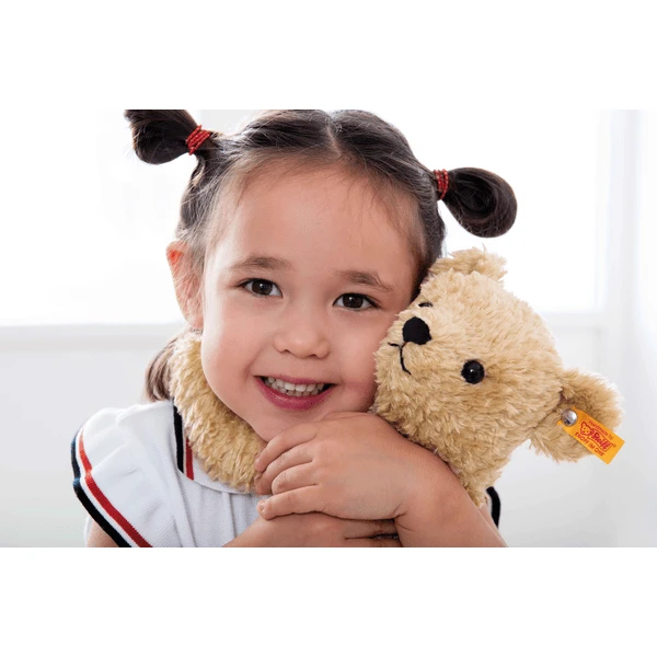 Paddy Teddybeer is 30 cm hoog en gemaakt van knuffelzacht pluche. In een warme goudbruine en met een crèmekleurige kist lijkt hij erg strelend. Paddy is 5-voudig beweegbaar en heeft een granulaattas in de billen voor stabiel zitten. De mond is zwart gegarneerd. De ongewone beweeglijkheid van de kop verhoogt de speelwaarde van deze berenwelp aanzienlijk. Vooral als hij zijn hoofd op een grappige manier heen en weer zwaait.