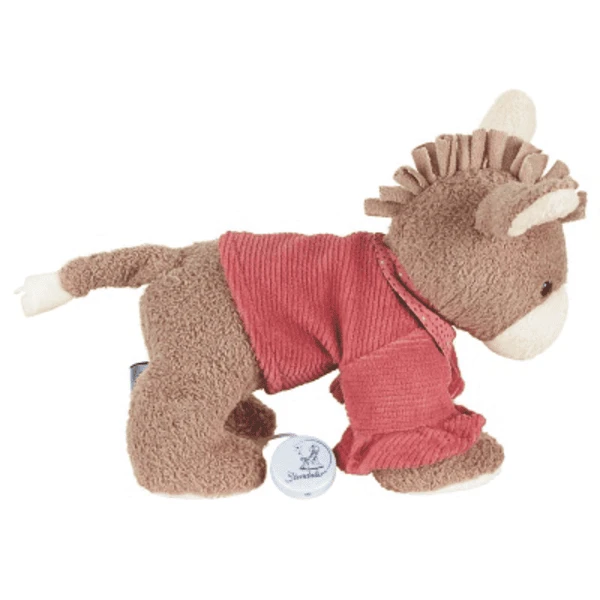 Het schattige ezeltje Emmily in lichtbruin en lichtrood is gemaakt van knuffelige fluffy stof, Nicki en poly cotton . Het trendy rode shirtje en het schattige geborduurde perenmotiefje op het beentje maken van Emmily een echte blikvanger. Dankzij de praktische afmetingen van 20 cm is het middelgrote muziekdoosje ideaal voor de allerkleinsten en gemakkelijk vast te pakken, maar ook interessant voor oudere kinderen en een goede vriend om mee te spelen en te knuffelen. De populaire melodie “You are my sunshine” kalmeert je kleine schat en zorgt voor een zacht inslapen.