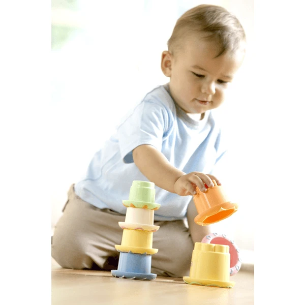 - Laat uw kind zien hoe hij de bekers moet stapelen – en omstoten!